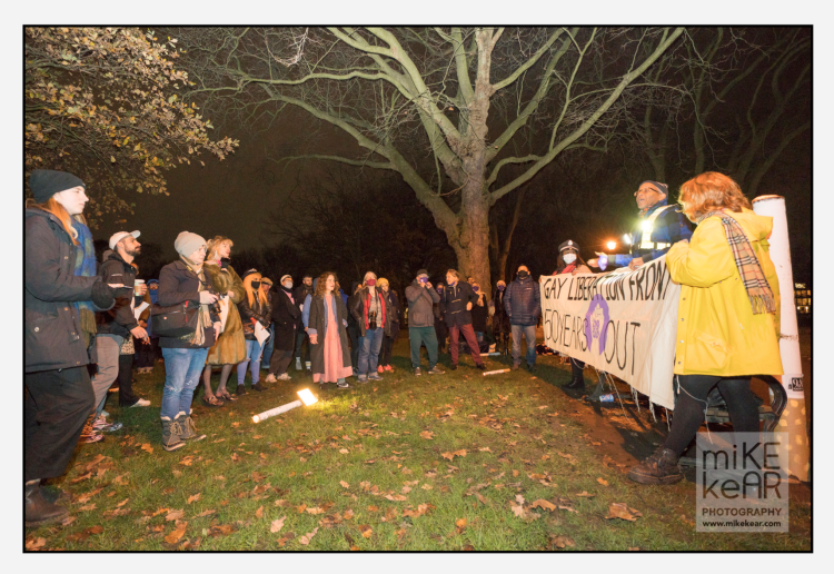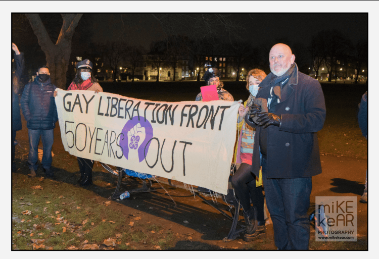 On Friday 4th December 2020 we celebrated the demonstration led by the Gay Liberation Front (GLF) against unjust laws and police misconduct that took place in Highbury Fields to commemorate the richness of our beautiful LGBT+ history, agitate for more queer anger and celebration, and to highlight the ongoing struggle for total freedom for all! We re-imagined the torchlight protest that took place 50 years ago which was organised in solidarity with Louis Eaks, chair of the Young Liberals, who was arrested for ‘importuning for an immoral purpose’ – cruising, to you and me.