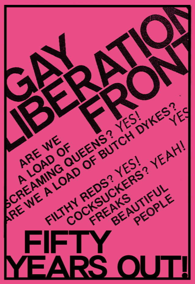 It’s fifty years since the Stonewall Uprising and next year it will be fifty years since the Gay Liberation Front reached London. How time flies! – forty-seven years since the under-21s of the Gay Liberation Front organised London’s first Pride March.